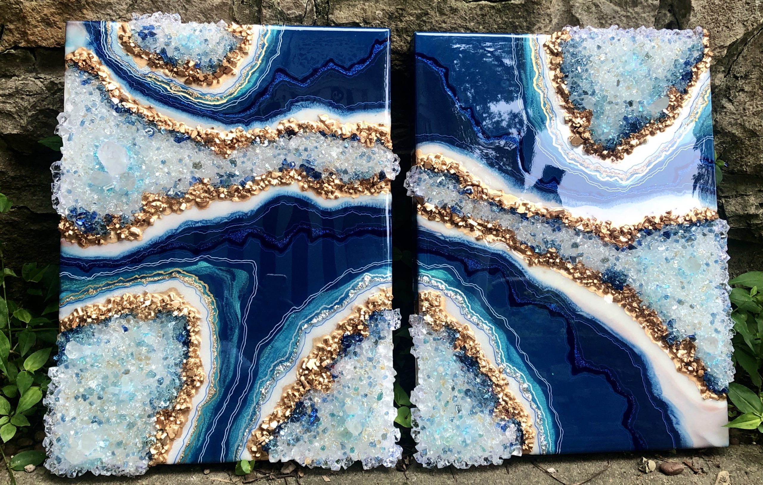 Each of my creations are handmade in a home studio and may have small imperfections on the surface of the resin such as fine bubbles, ripples or small particles that have found a way to the painting curing within the resin during its 24-48 hour drying stage. If you want to see more photos of a piece or would like to request a video, please contact me.