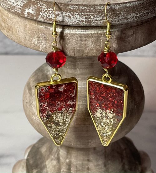 Handmade Red/Gold Resin Glitter Earrings